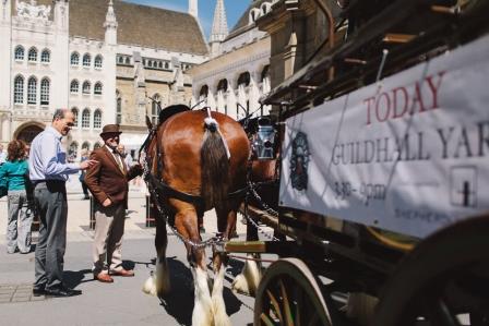 A dray horse carriage travelled around the City during the lunch period drawing attention to the event and, as the work day ended, the bells of St Lawrence Jewry rang out, drawing even more people to the Fest.